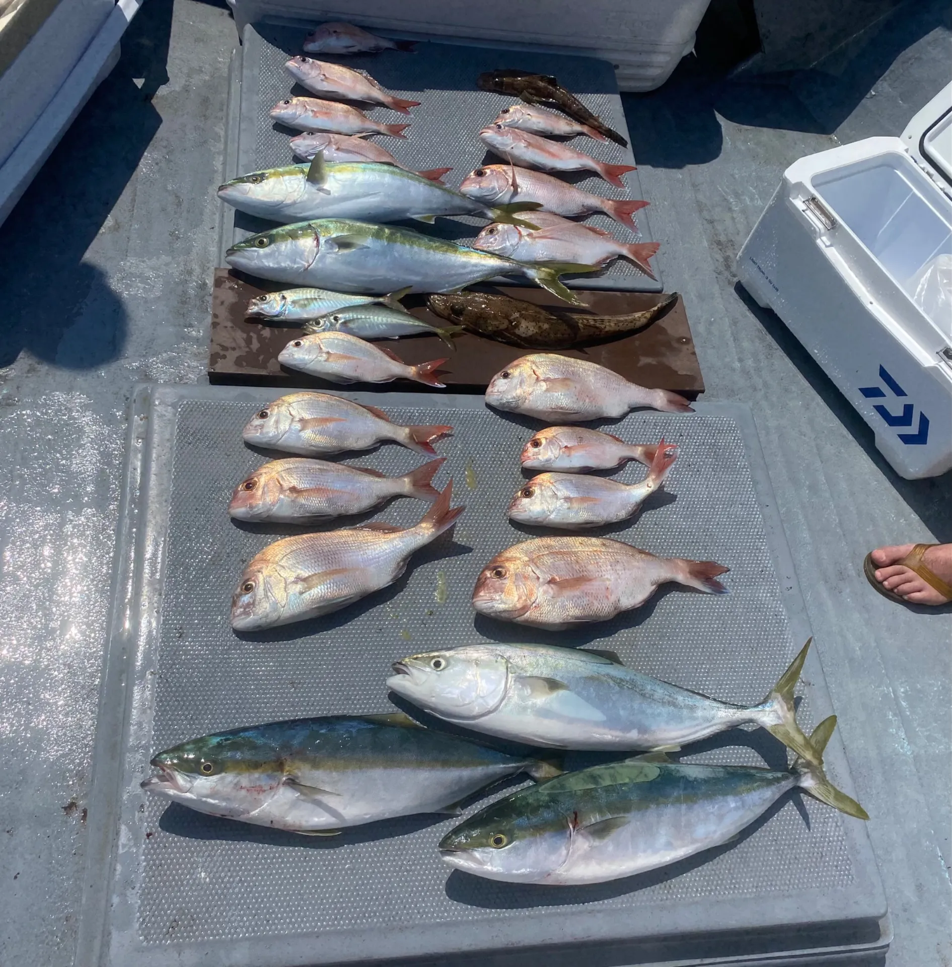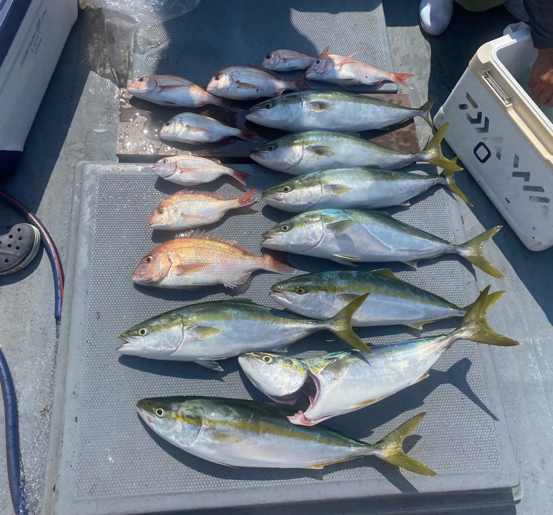 タイラバ便❣️ 朝の時合いは青物の猛攻に遭いながらも鯛もポツポツ潮変わってからも数はかなり釣れたんですけど30センチ未満のリリース10枚近くなんとかマシなサイズもポツポツ拾え楽しめましたまだまだ暑いので飲み物…